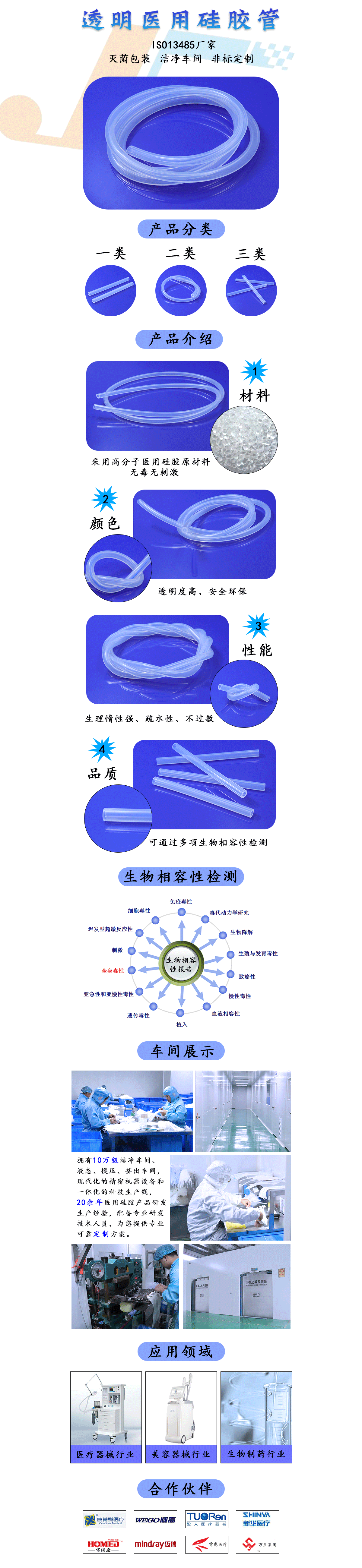 制作原材料為醫(yī)用高分子材料,具有抑菌、高透明、生物相容、人體接觸不過敏等特性,主要用于各種醫(yī)用引流